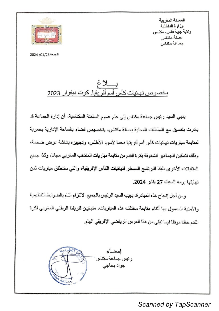 بلاغ بخصوص نهائيات كأس أمم أفريقيا كوت ديفوار 2023