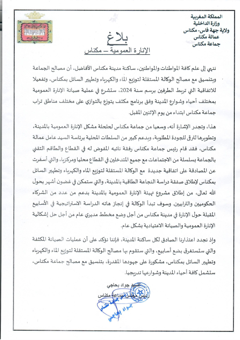 بلاغ حول الإنارة العمومية